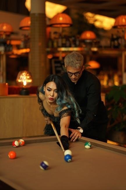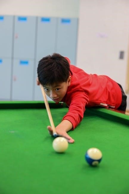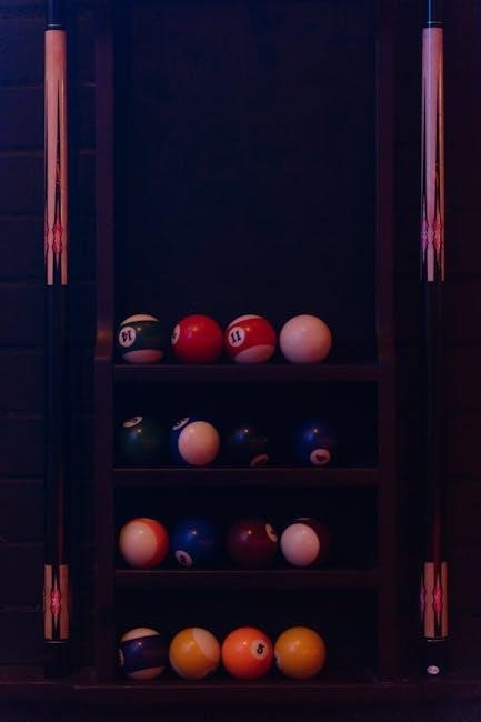 Pool cues are crafted from a variety of materials, each offering distinct advantages. Maple wood is the most common, prized for its balance and clear feedback. Fiberglass and graphite cues are durable and resistant to warping, making them ideal for players prioritizing consistency. Ash wood cues are heavier and stiffer, providing more power for aggressive players. Exotic hardwoods like ebony or rosewood are used for premium cues, combining aesthetics with exceptional feel. The choice of material significantly impacts the cue’s weight, balance, and playability. Modern manufacturing often blends materials, such as graphite-wrapped maple shafts, to enhance performance and longevity. Understanding these options helps players select a cue that matches their style and preferences.